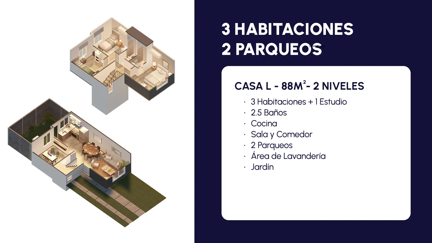 Proyecto ubicado en Santa Lucía Cotzumalguapa, con diferentes modelos de vivienda que se adaptan a las necesidades de tu familia. Disfruta de un entorno tranquilo y agradable, con amenidades pensadas para tu comodidad y recreación. Una excelente oportunidad para vivir con calidad y estilo.